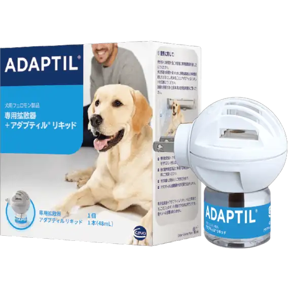 ○アダプティル:犬のストレスや不安を和らげるために開発された「母犬が子犬に出す安心フェロモン(犬用フェイシャルフェロモン)」を再現した製品