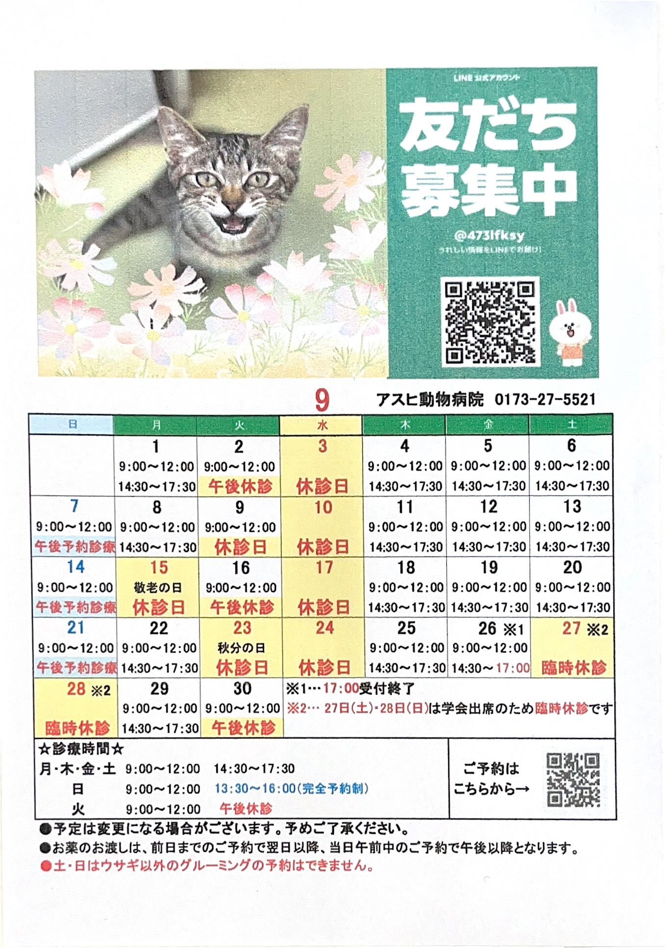 ・27日(土)・28日(日)は、学会出席のため臨時休診です