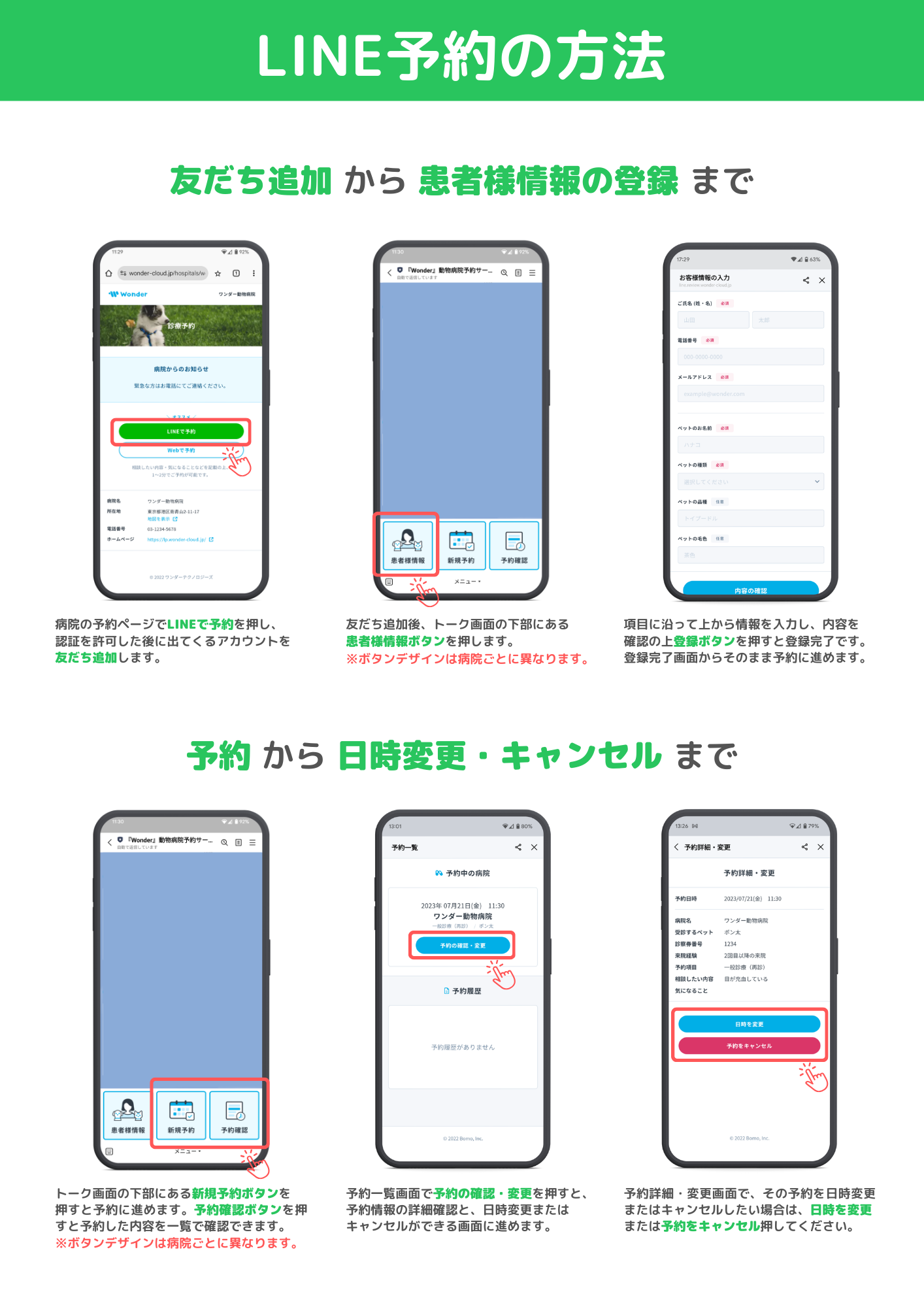下記に、新システム(Wonder)を用いたLINE予約の手順をご案内いたします。