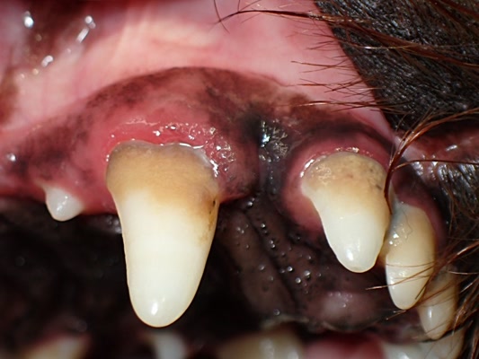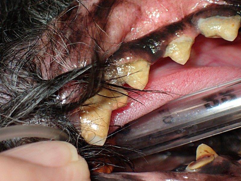 かなりの歯石と歯周炎がみられます。
