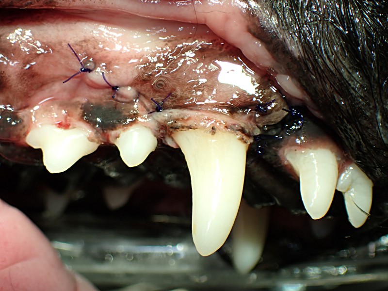 まず歯石を超音波スケーラーで除去します。その後、ダメージが大きく修復が難しい歯は抜歯をします。その後オゾン水を使い洗浄し、半導体レーザーにより歯肉の殺菌を行います。過形成を起こした歯肉部分はレーザーで切除や焼却していきます。その後2種類のコンパウンドでポリッシングを行い歯の表面の細かいキズを滑らかにしていきます。これをしないとこれらの細かいキズを足がかりに新たな細菌感染を起こしやすくなります。退行してしまった歯茎は周囲の歯肉を整形し新しい歯茎を形成し、定着するように縫合します。