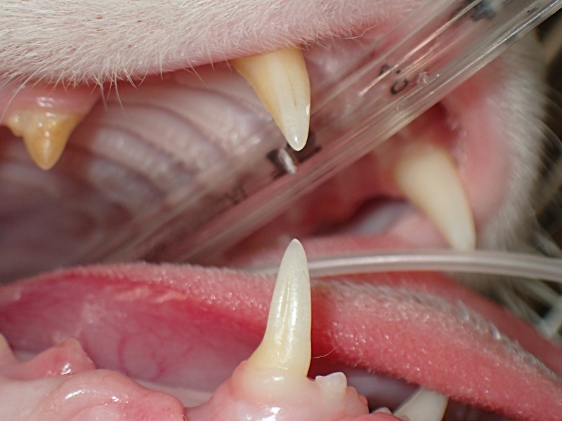 歯石:細菌性プラークがカルシウムやリンを取り込んで石灰化し、歯石となります。歯石になるまでの期間は3-5日間と言われています。この歯石を除去するには、麻酔下歯科処置が必要となります。