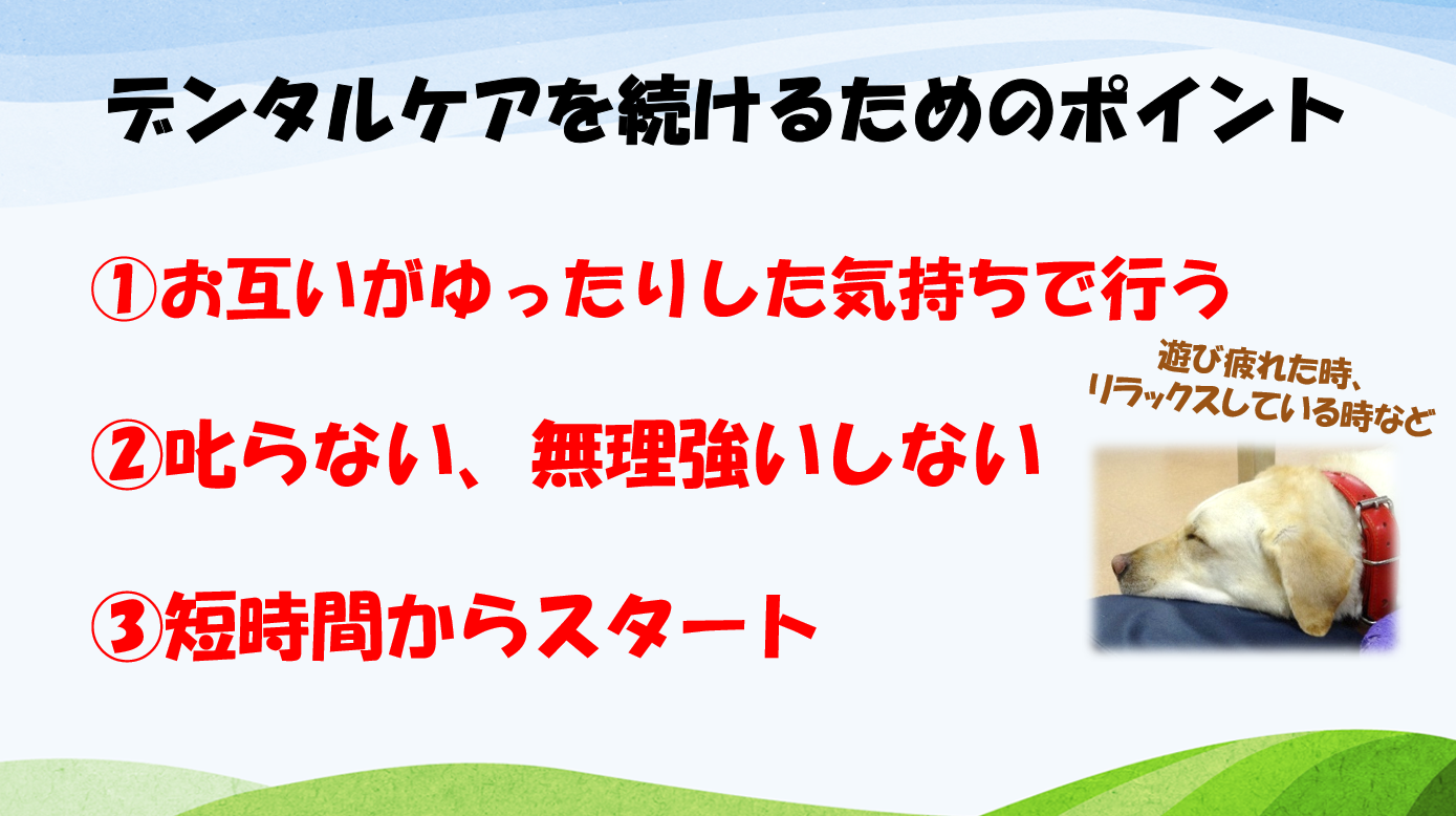 ワンちゃんもご家族も、楽しく続けられるケアを目指すことが一番大切な事です