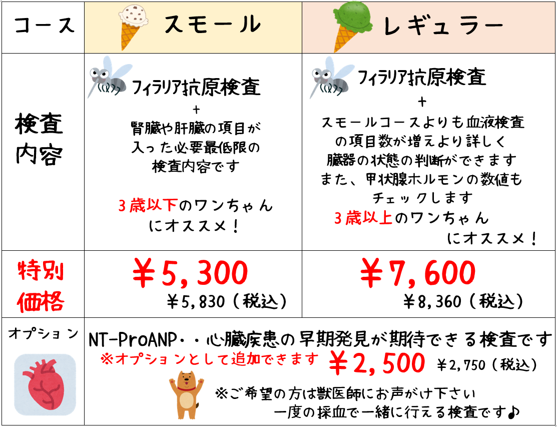 フィラリア検査と血液検査を組み合わせたお得な健康診断♪