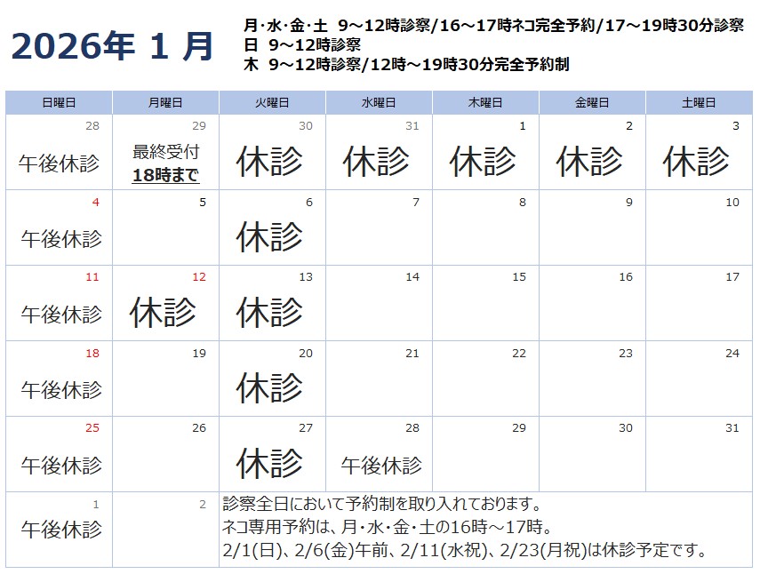 ※休診日や診療時間は変更になる可能性があります。ご了承ください。