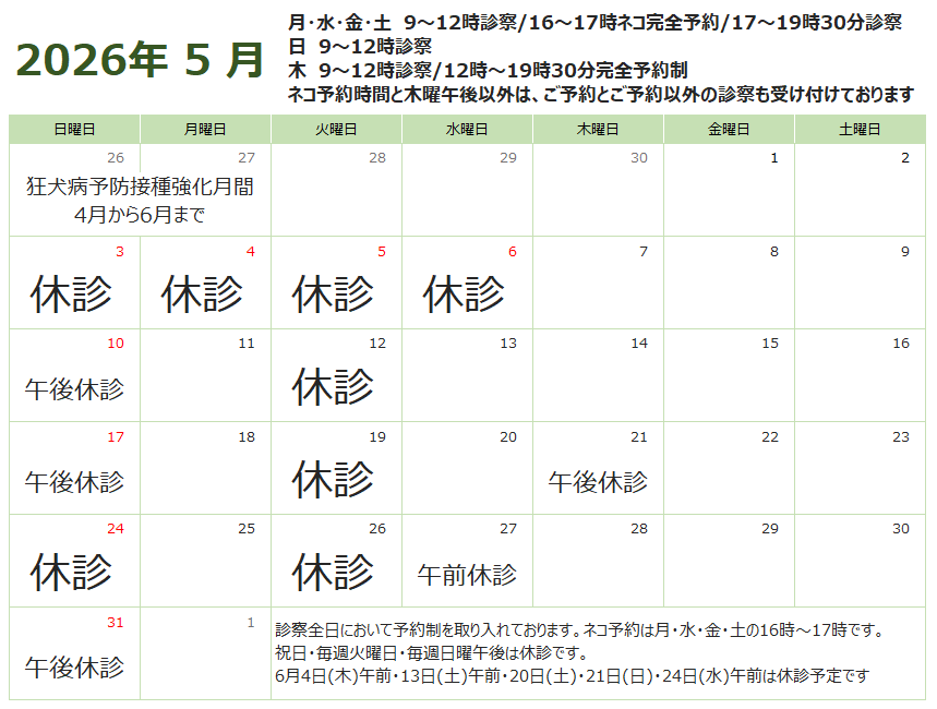 ※休診日や診療時間は変更になる可能性があります。ご了承ください。