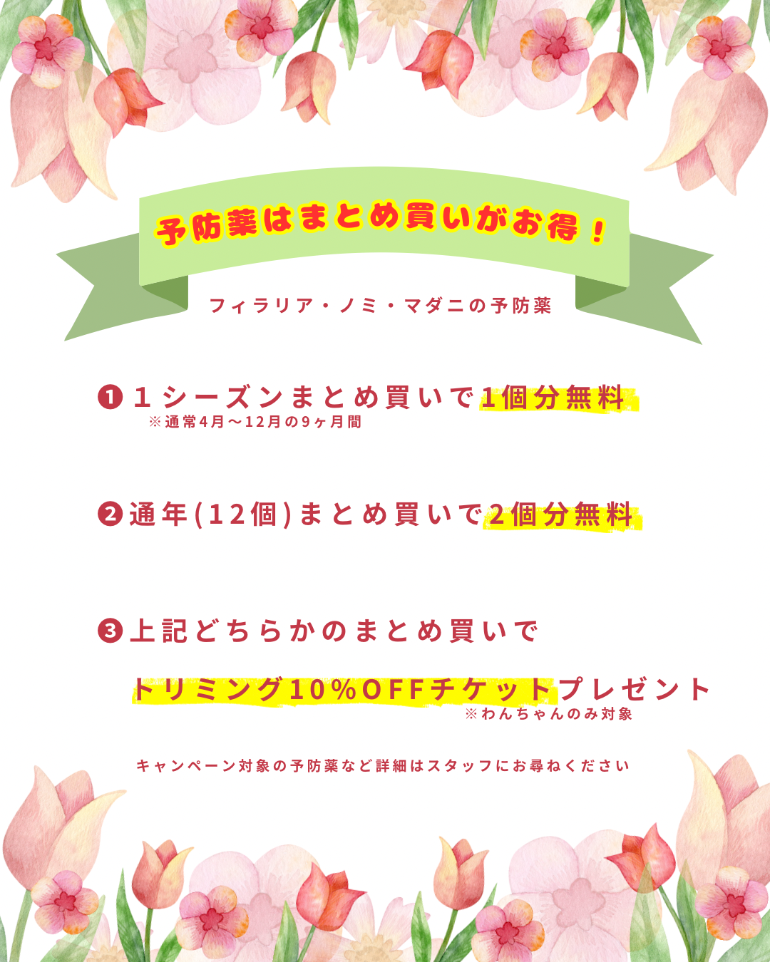 今年も当院では予防薬のまとめ買いキャンペーンを実施します🌷