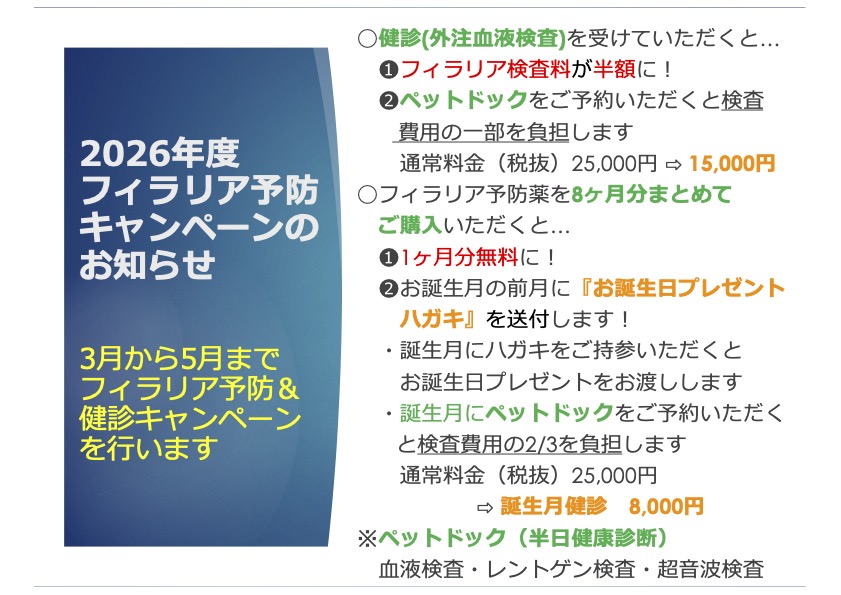 2026年度フィラリア予防キャンペーンのお知らせ