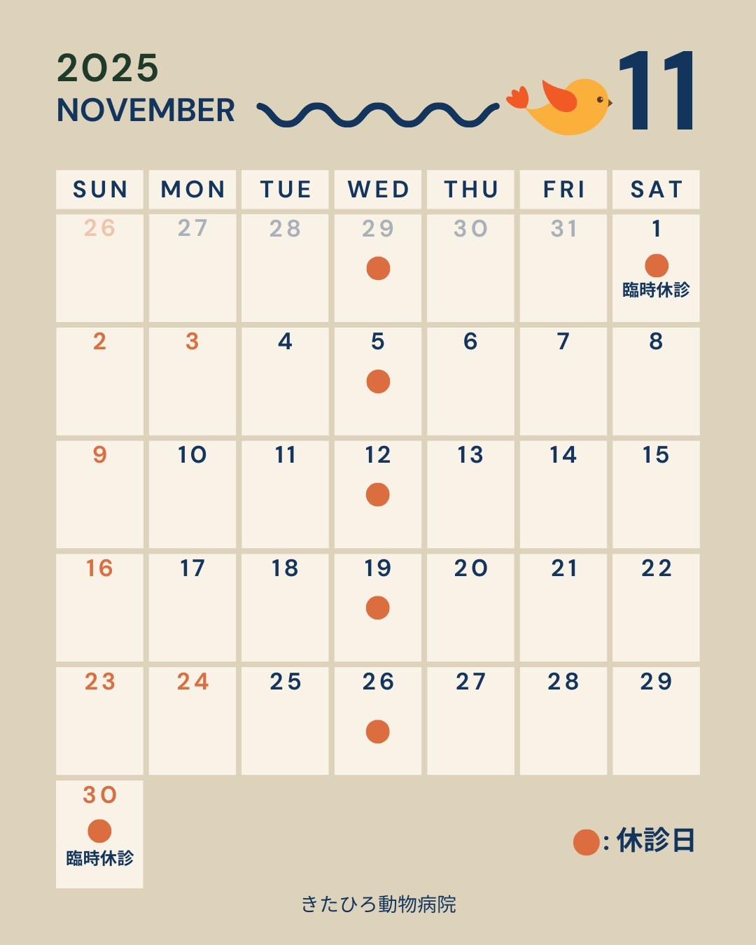 11月の臨時休診のお知らせです。お間違えのないようご留意くださいませ。
