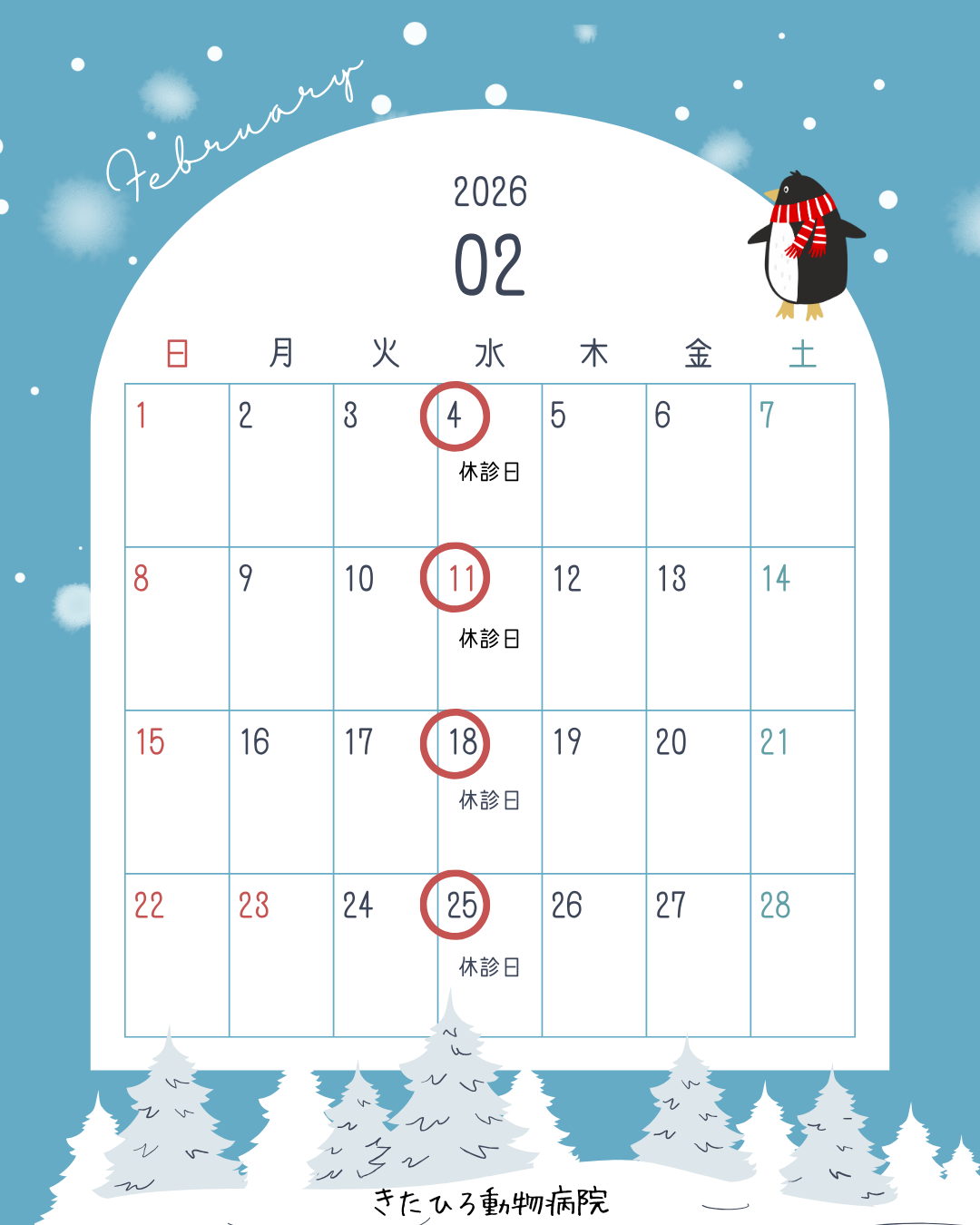 2月の休診日のお知らせ