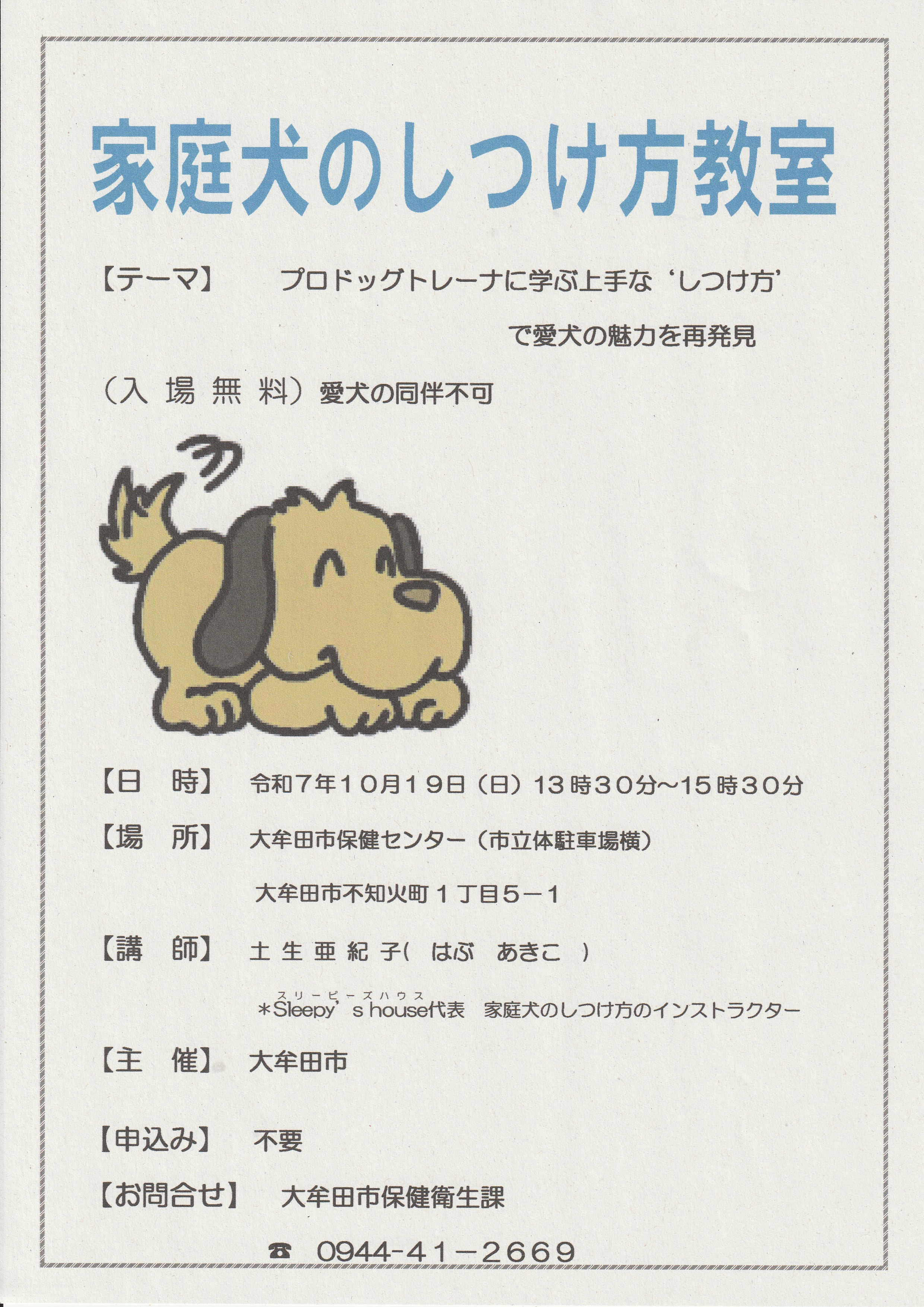 「家庭犬のしつけ方教室」開催のお知らせ!
