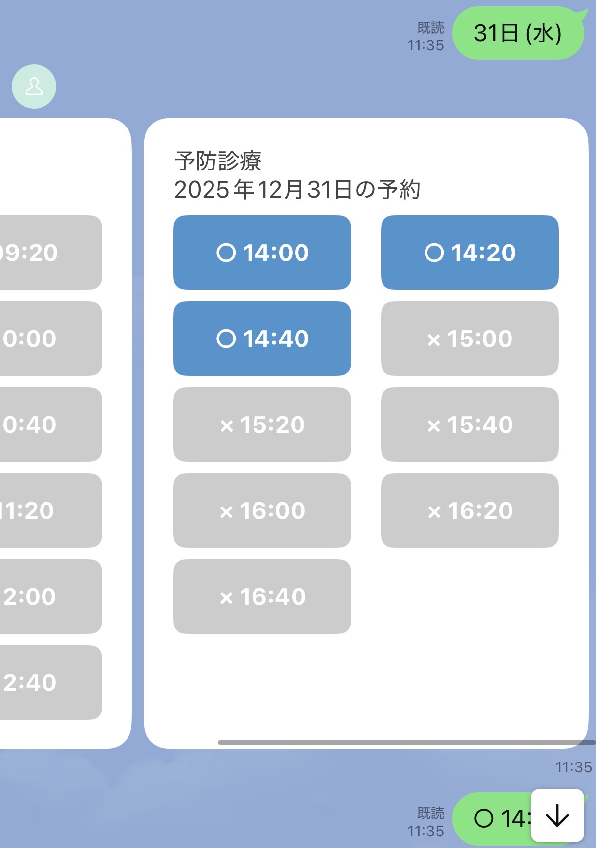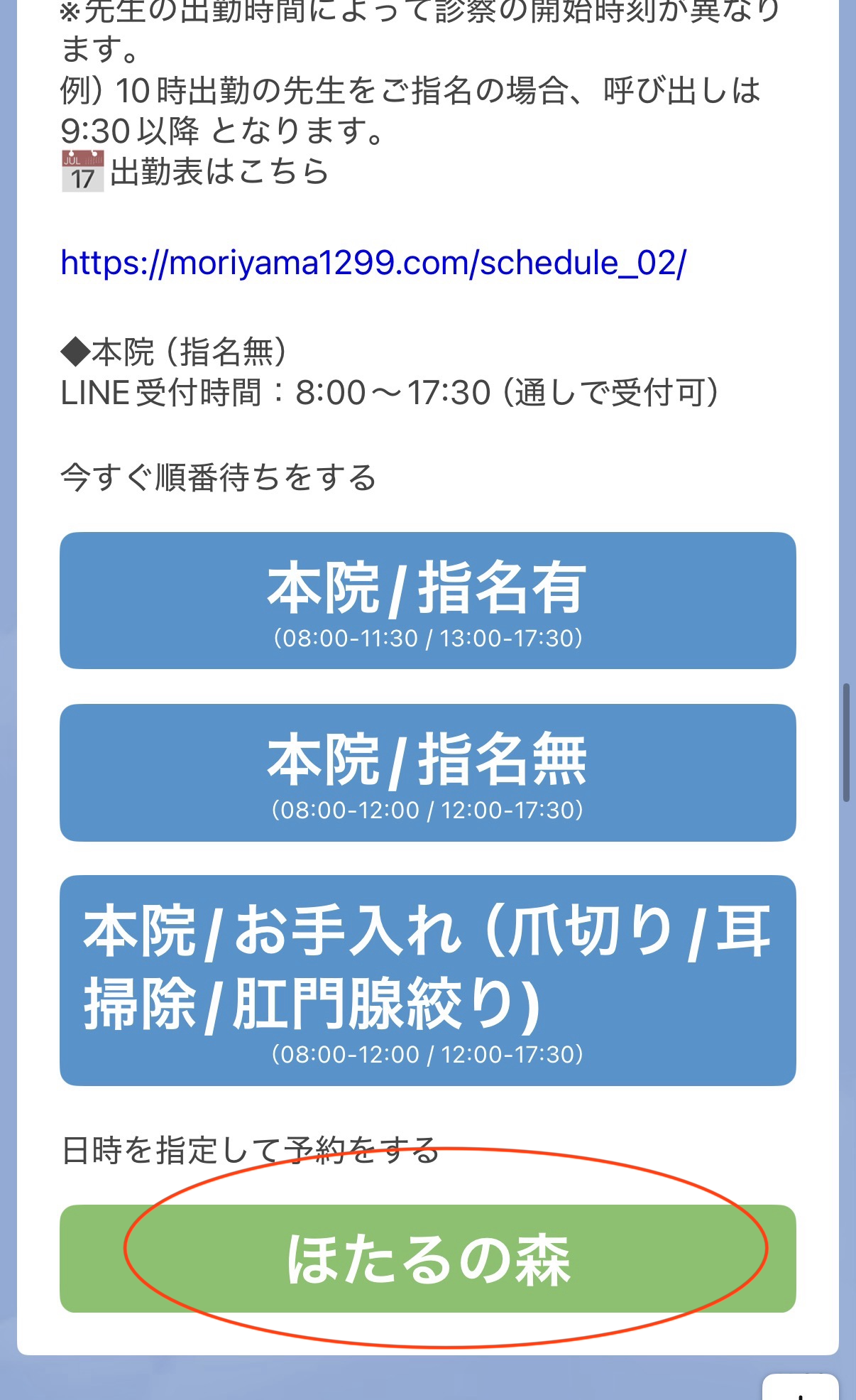 サイトを移動することなく、LINEメニューから「本院」「ほたるの森」どちらの予約もスムーズに行えるようになります。