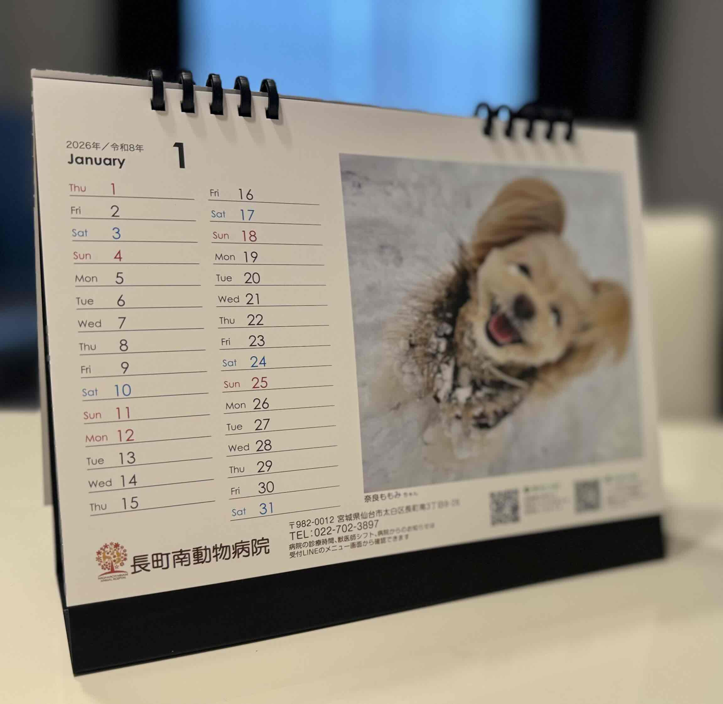来年の2026年病院カレンダー(A5卓上型)は診察やトリミング等来院いただいた患者様へ1部無料配布させて頂きます。