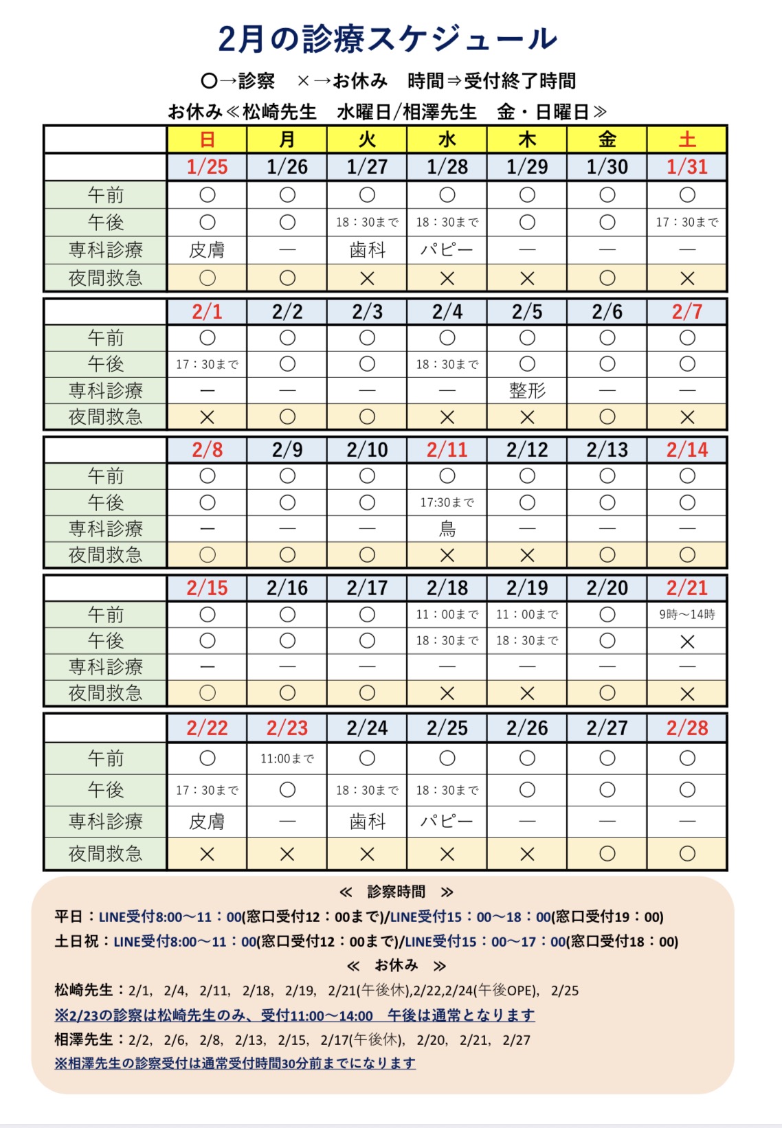 2月獣医師スケジュール 写真モデル:木村ココ・メグちゃん