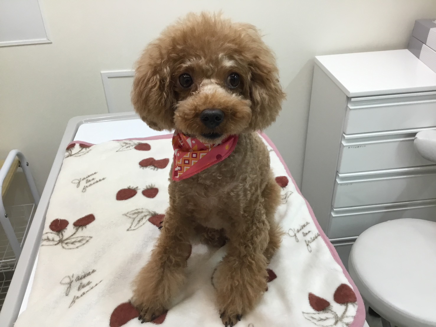 傷口のチェックをし、おめかしして飼い主様のお迎えを待ちます!