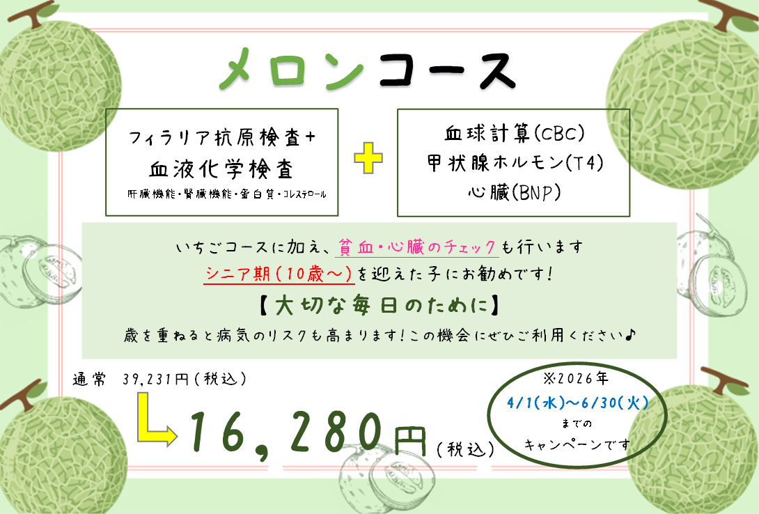 今年もフィラリアの血液検査に健診セットをオプションでご用意しました。