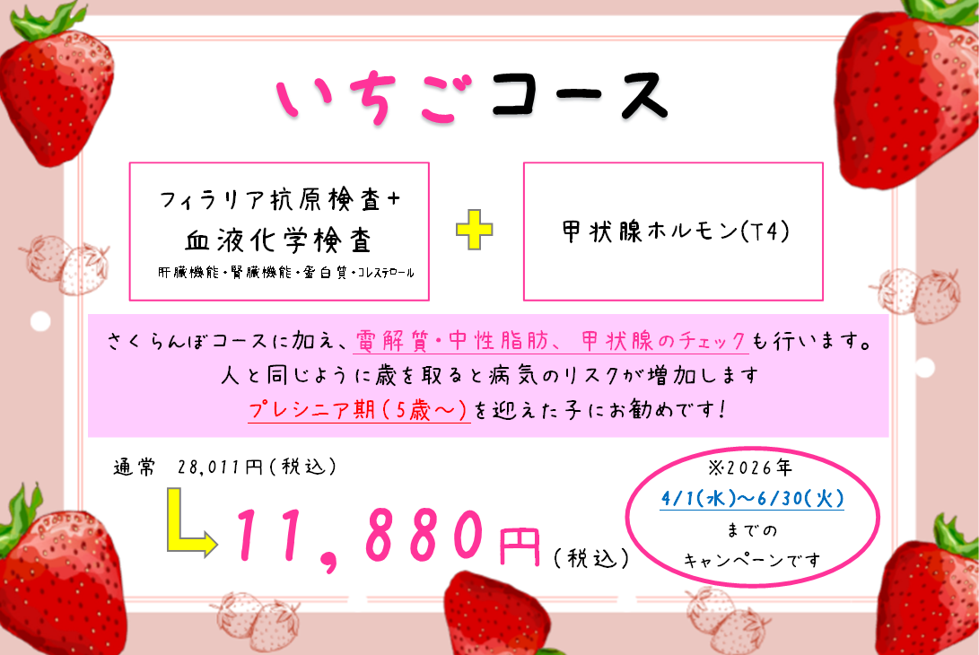 いちごコースに加え、貧血のチェック・心臓機能チェックも行います。
