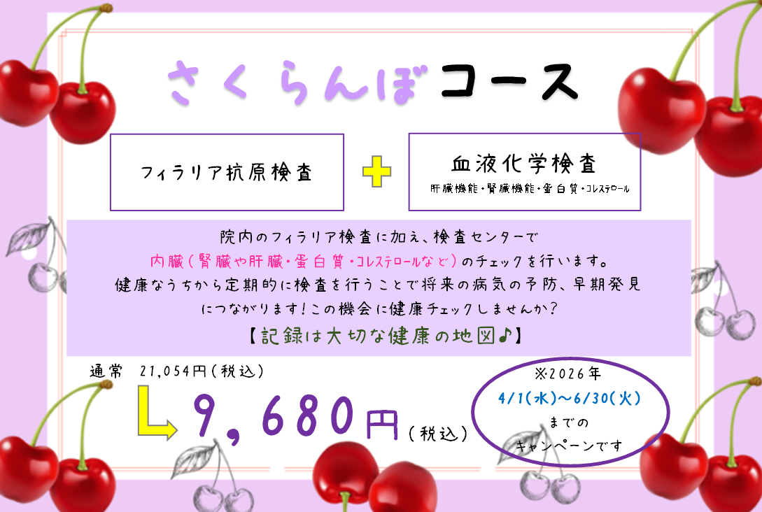 さくらんぼコースに加え、電解質・中性脂肪・甲状腺疾患のチェックも行います。
