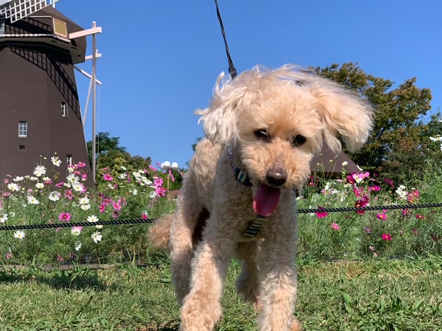 「お出かけ大好きなアポロ。これからもいっぱいお出かけして楽しもうね。」