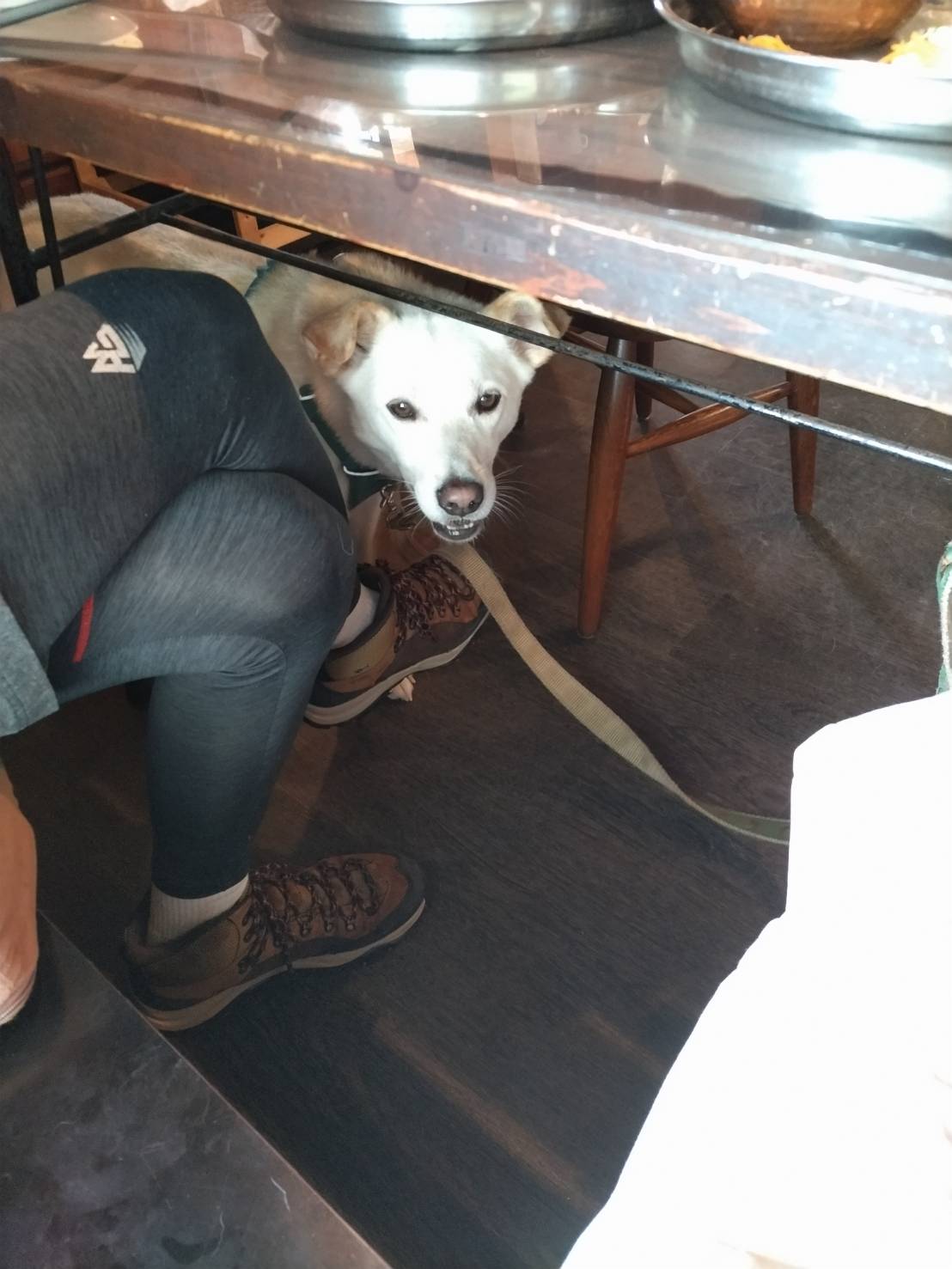 だいちゃんも犬用のおやつを買ってもらい、テーブルの下でひと休み。
