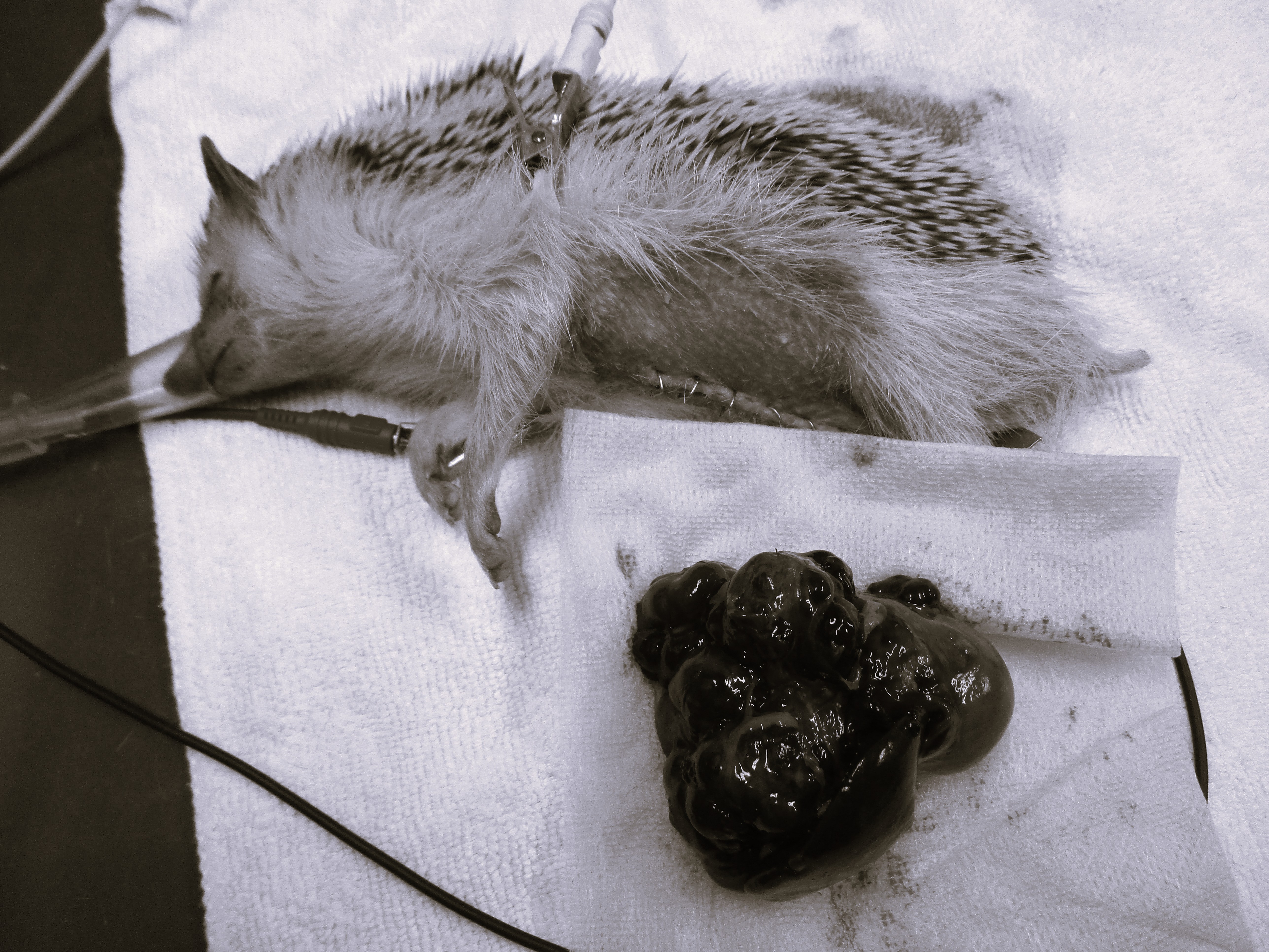 腫瘍が大きくなると、ハリネズミの健康に深刻な影響を及ぼします。