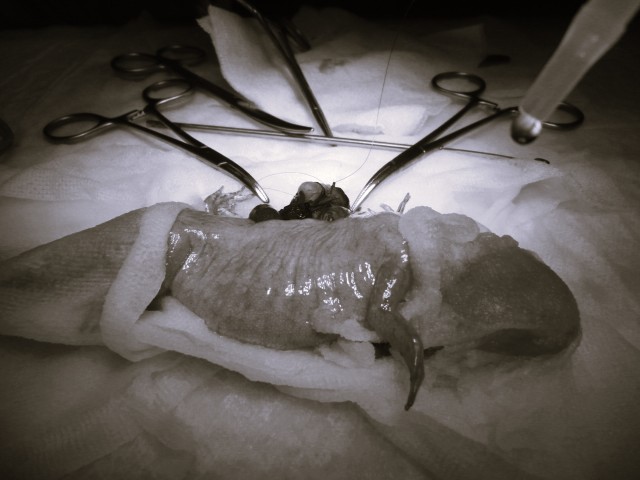 細かい砂だったり、少量の誤食だった場合には吐き戻したり、便と一緒に排出できたりしますが、このくらい入ってしまうと難しくなってきます。