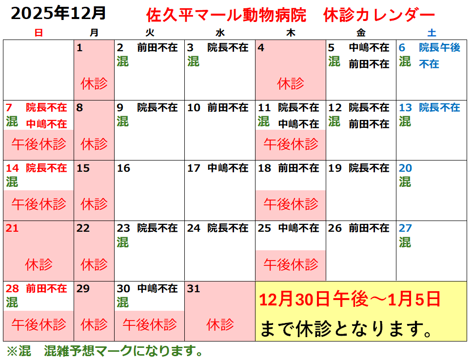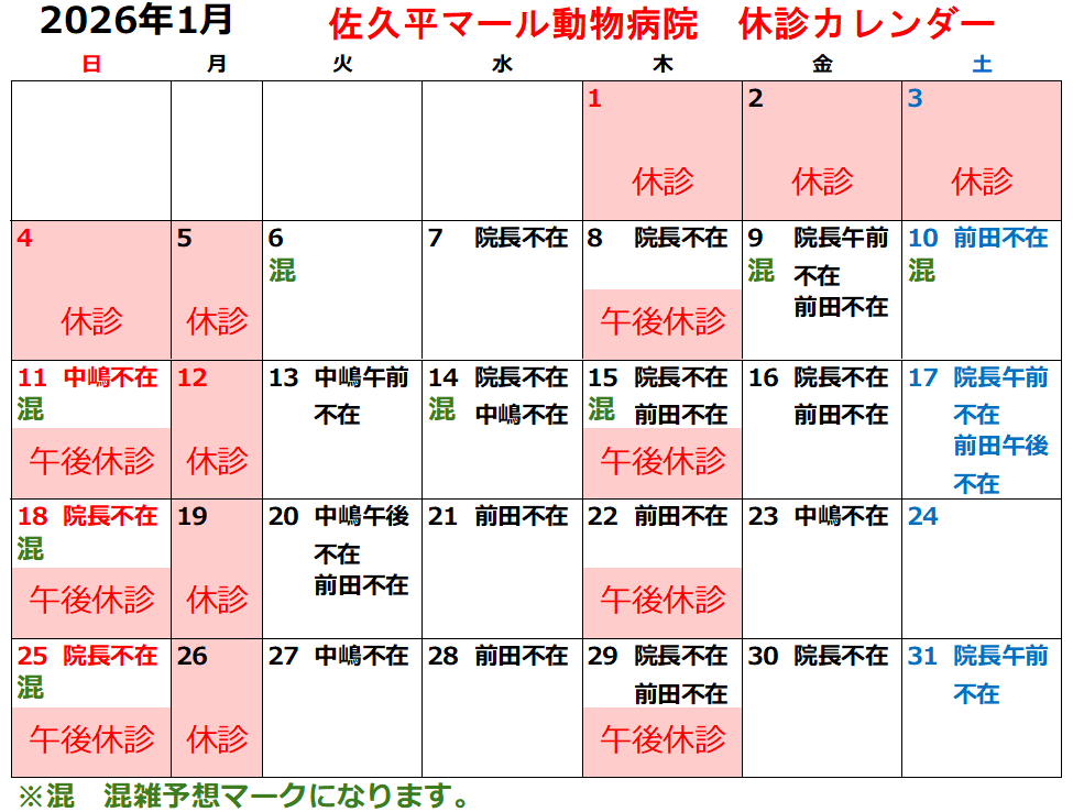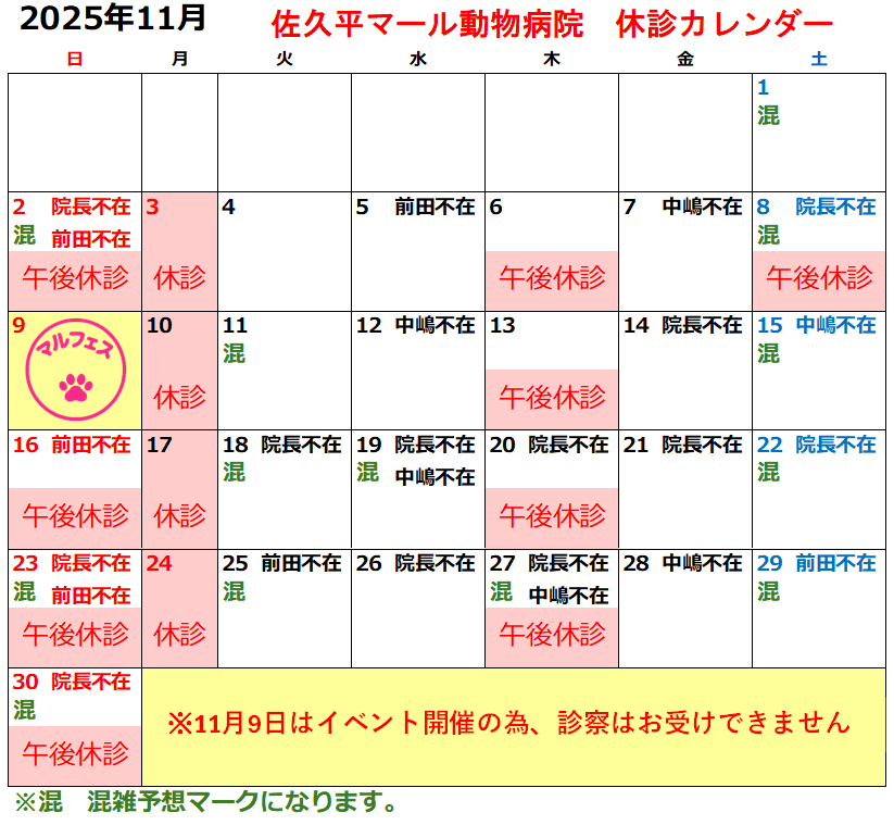 この他、臨時休診、獣医の臨時不在等ある場合がございます。ご了承ください。