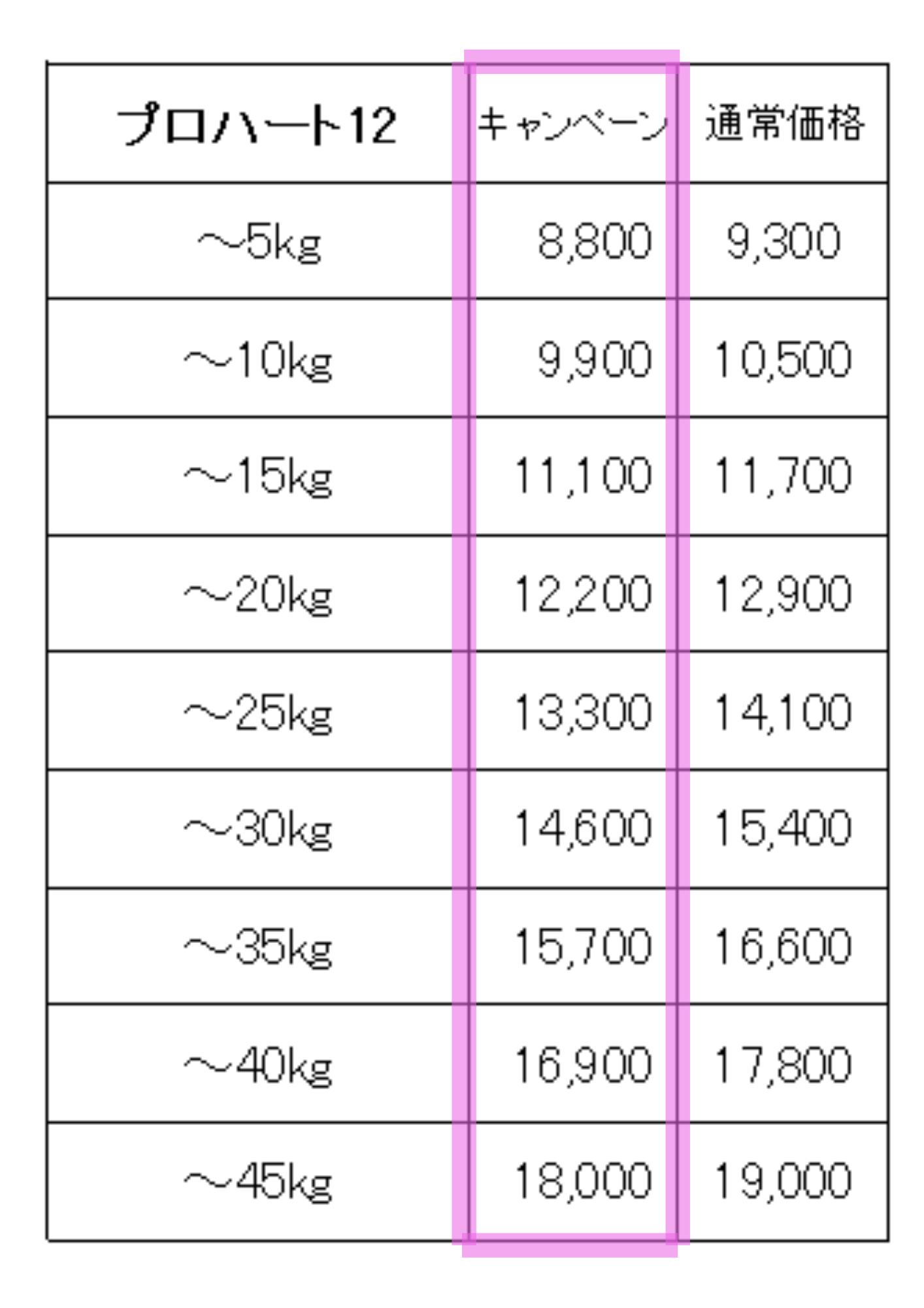 🐶プロハートの金額は体重によって変わります!お電話にてお問い合わせの際には正確な体重をお知らせください。